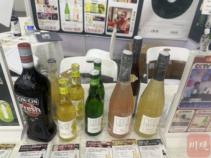 香草石榴葡萄酒、果泥粉心苹果酒、西欧冻梨酒……让记者更为“稀罕”的,是波兰展馆里五颜六色的果酒。“我们强推果泥粉心苹果酒,你试试。”展馆负责人给记者递上一杯酒。
